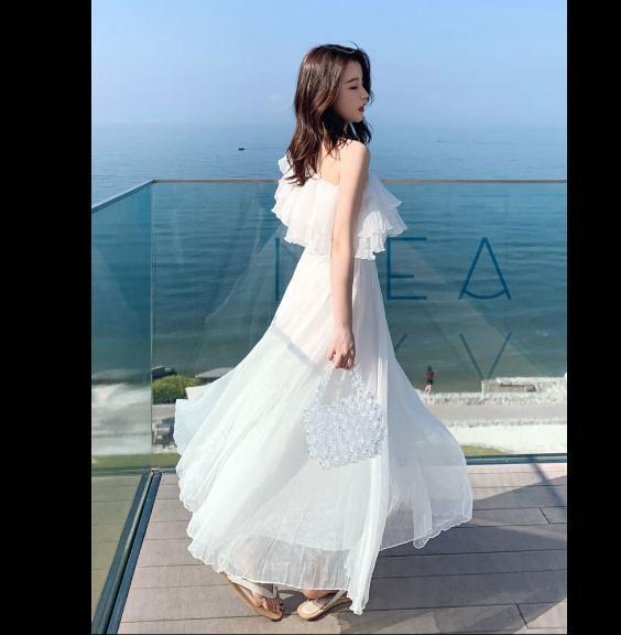 段になったデザインが動きに合わせて揺れ、白い色合いが清楚で上品な印象を演出します。