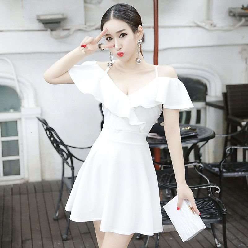 美しいシルエットで体型をカバーしながら、白い色合いが清純な魅力を引き立てるミニワンピースです。