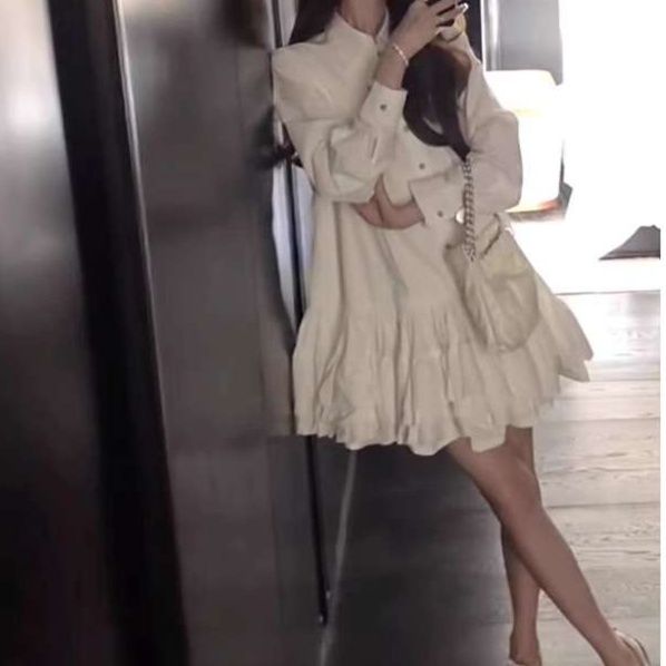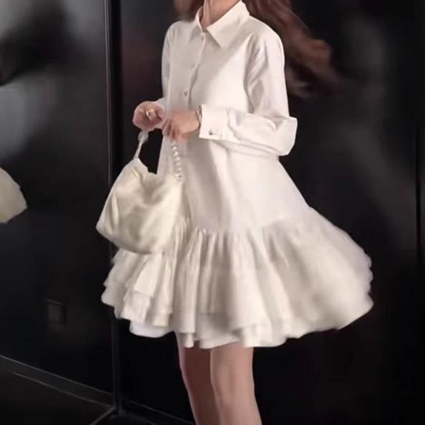 清楚な印象の白ワンピースは襟付きデザインが特徴的なシャツワンピ。