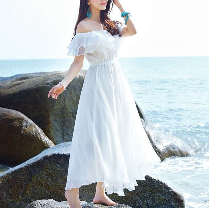優雅な雰囲気を演出する白ワンピース。