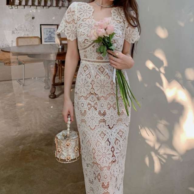 気品漂う白ワンピースは、特別な日の装いにぴったり。繊細な総レースが施された透け感のある生地は、女性らしさを引き立てます。フェミニンな短袖デザインとエレガントなロングシルエットが融合し、洗練された印象を与えるマキシワンピース。どんなシーンでも、自信を持って着こなせる一着です。