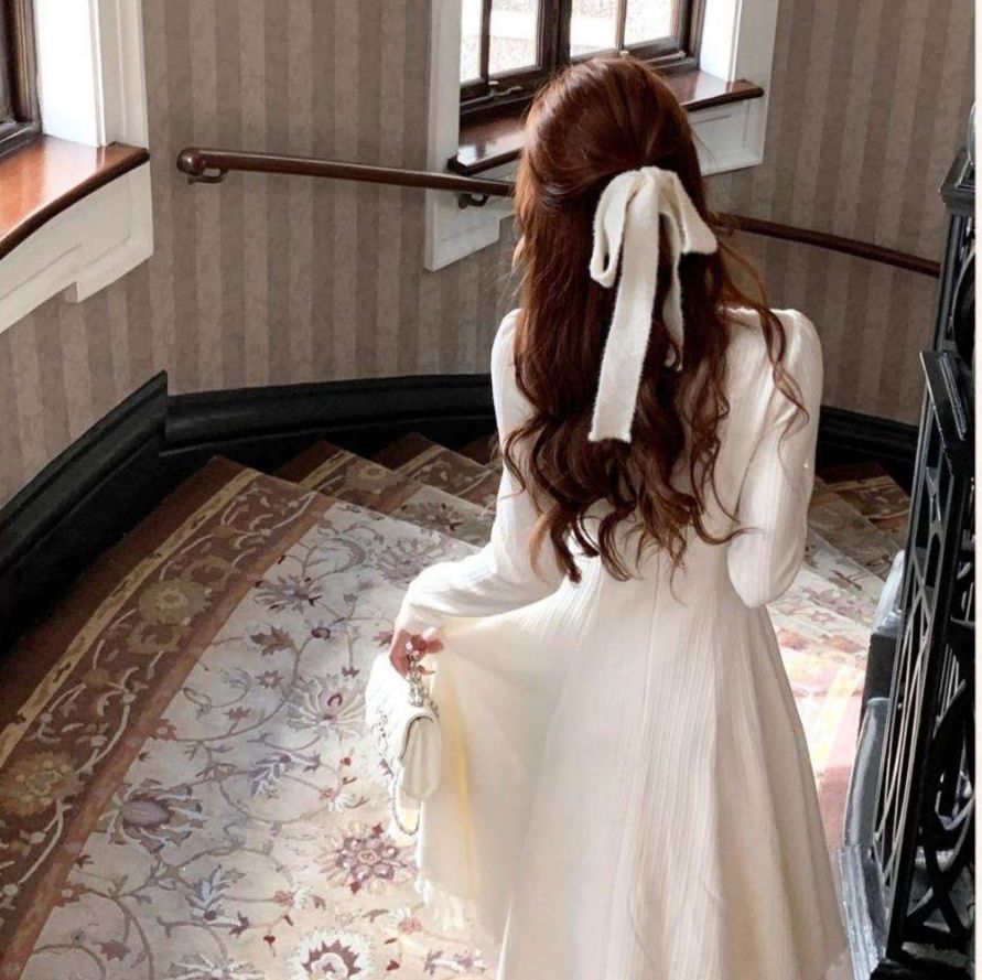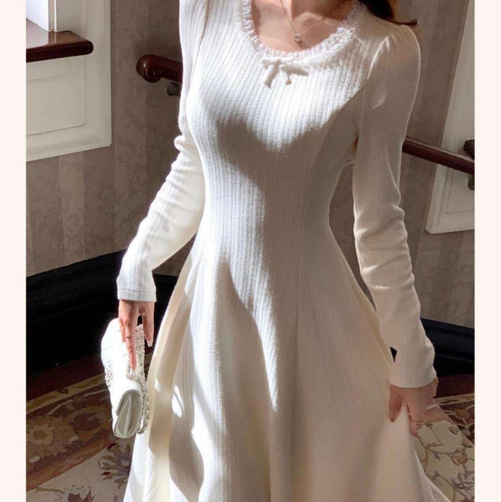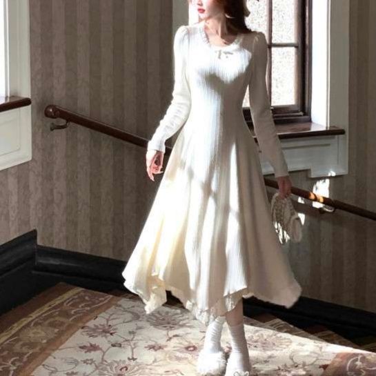 上品な白ワンピースは、すっきりとしたシルエットと美しく広がるロング丈スカートが魅力。