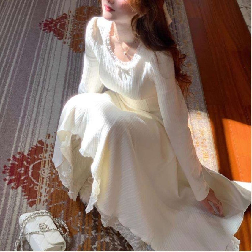 マキシワンピとして着こなせる優雅な一枚で、リブニット素材が上質な印象を演出します。