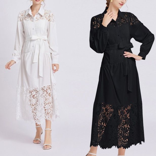 裾と肩のレース部分が繊細な透け感を持ち、清楚で優美な印象を与えます。