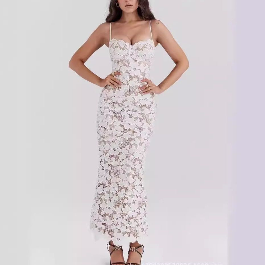 贅沢な総レース素材で仕立てた白ワンピース。