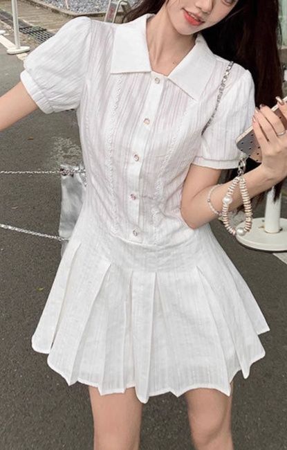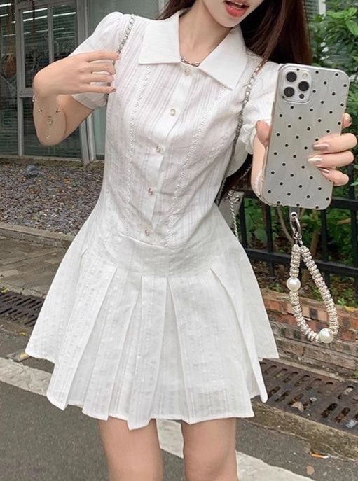 清楚な襟デザインが上品な印象を与える白ワンピースです。