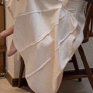 フレアに広がるスカート部分は、立体的なドレープが上品な雰囲気を醸し出します。