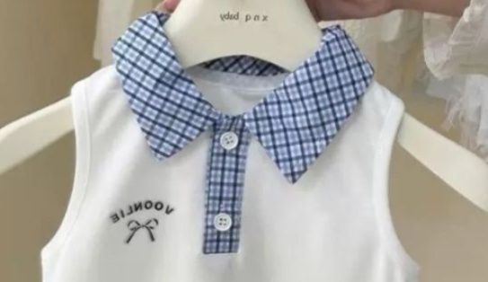 爽やかなギンガムチェック柄の襟リボンが可愛らしいキッズワンピです。