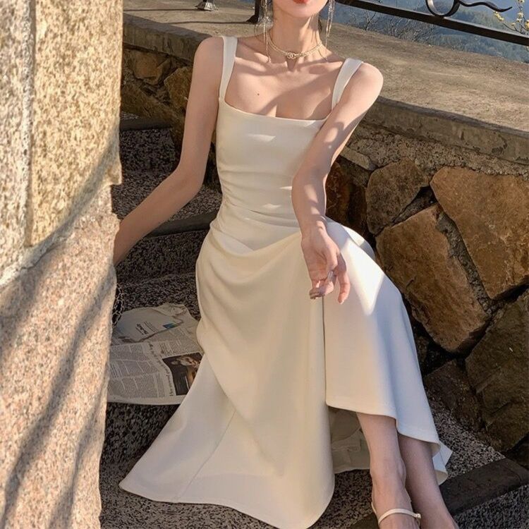 -10%上品なスクエアネックと太めのストラップが特徴的な白ワンピースです。 腰回りに施されたタックデザインが美しいドレープを生み出し、女性らしいシルエットを演出します。 ミモレワンピとして程よい丈感で、デイリーから特別な日まで幅広く活躍します。 背筋をすっと伸ばして着たくなる洗練されたデザインで、一枚で主役級の着こなしが完成します。 結婚式の二次会やパーティーシーンにもおすすめの上質な一着です。