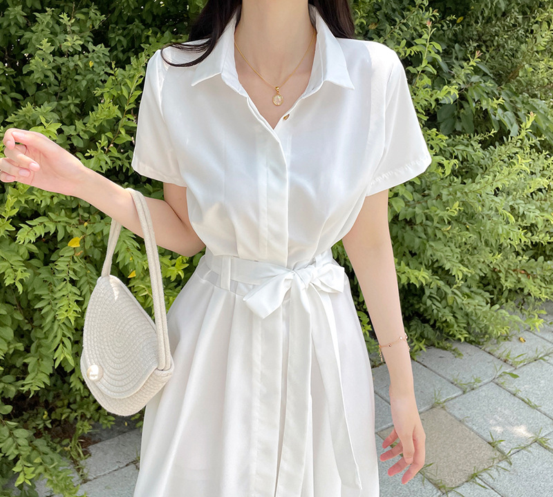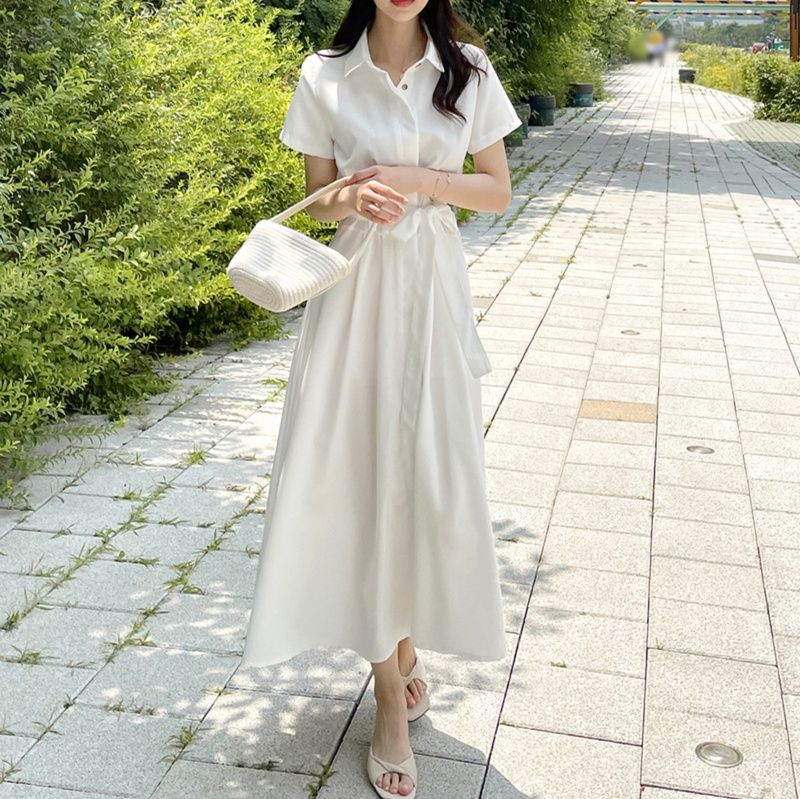清涼感溢れる襟付きデザインの白ワンピースです。