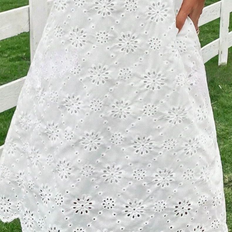 繊細な刺繍レースが全体に施された上品な白ワンピースです。