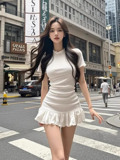 すっきりとしたボディラインを美しく見せる白ワンピースです。
