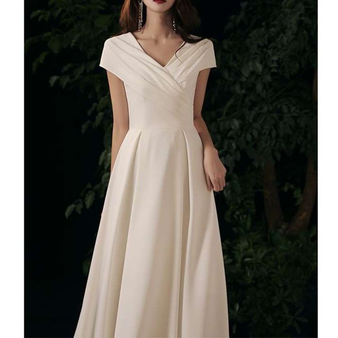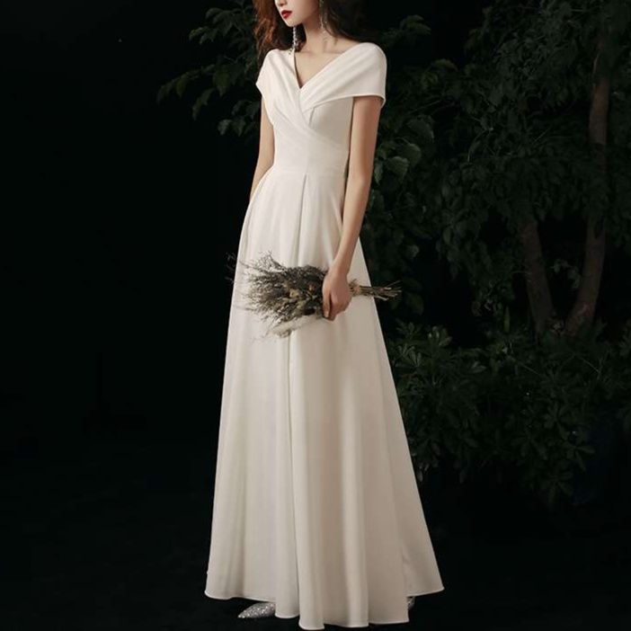 洗練された白ワンピースは、エレガントなVネックと短袖が特徴のドレスタイプ。Aラインシルエットは体型を美しくカバーし、上品な印象を与えます。自然な背景とのコントラストにより、その魅力が際立ち、特別なシーンにもぴったり。着る人の個性を引き立てる一着です。